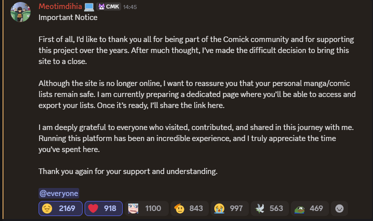 >site blows up in 2023, best place to keep up with manga w/ no ads, and also helping scanlators