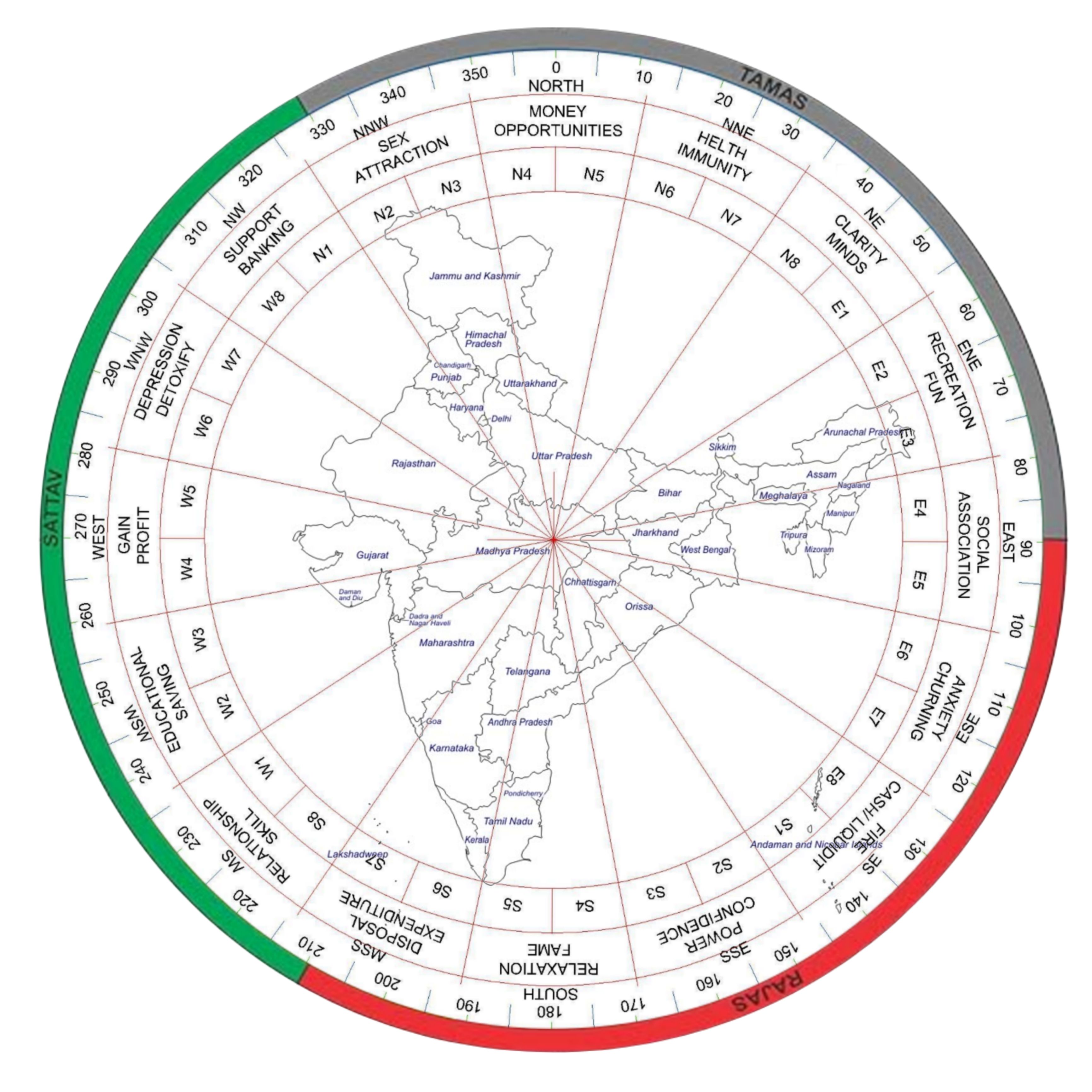 Those attributes aare already given in the vastu chakra. I placed it on india and almost all predictions made by the vastu chakra are accurate.