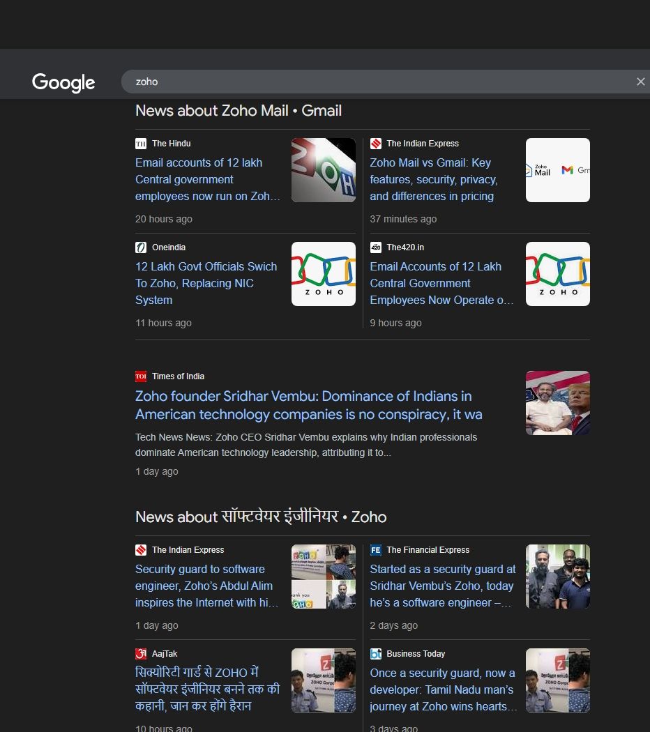 yaar we actually more than one zoho. more indian big tech needs to happen. and not sold to american capital before. an indian social media essepcially is needed