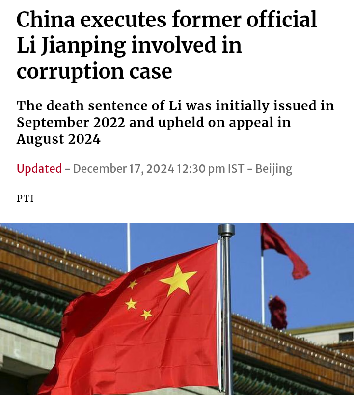 In China corrupt babus and ministers get executed, in lundia's 75+ year history this has never happened.