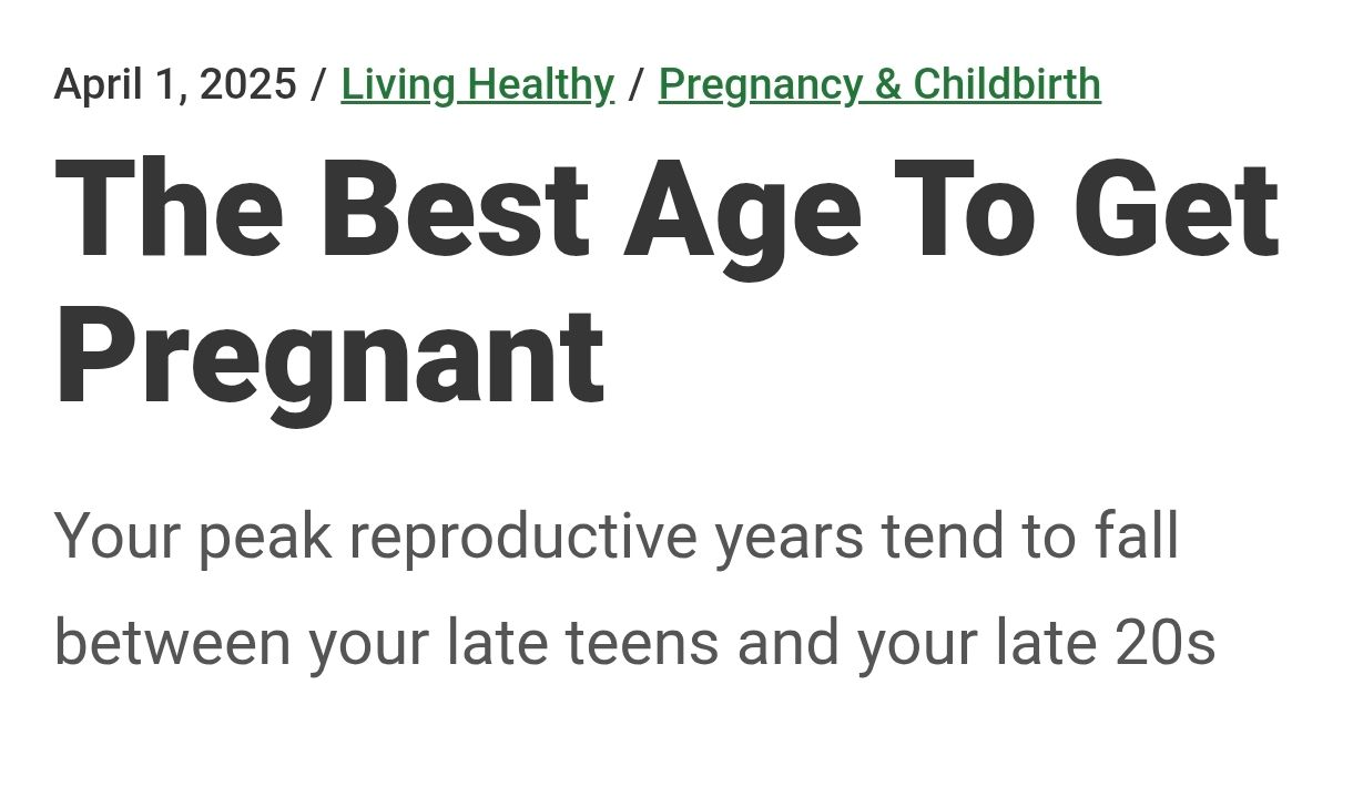 Pretty sure feminists have different claims and that women from lates 20s to mid 30s have the best pregnancy. Do you have something to back that claim sir?