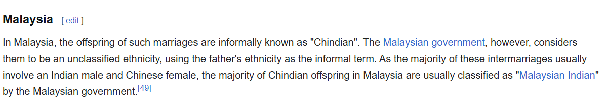 >the majority of these intermarriages usually involve an Indian male and Chinese female