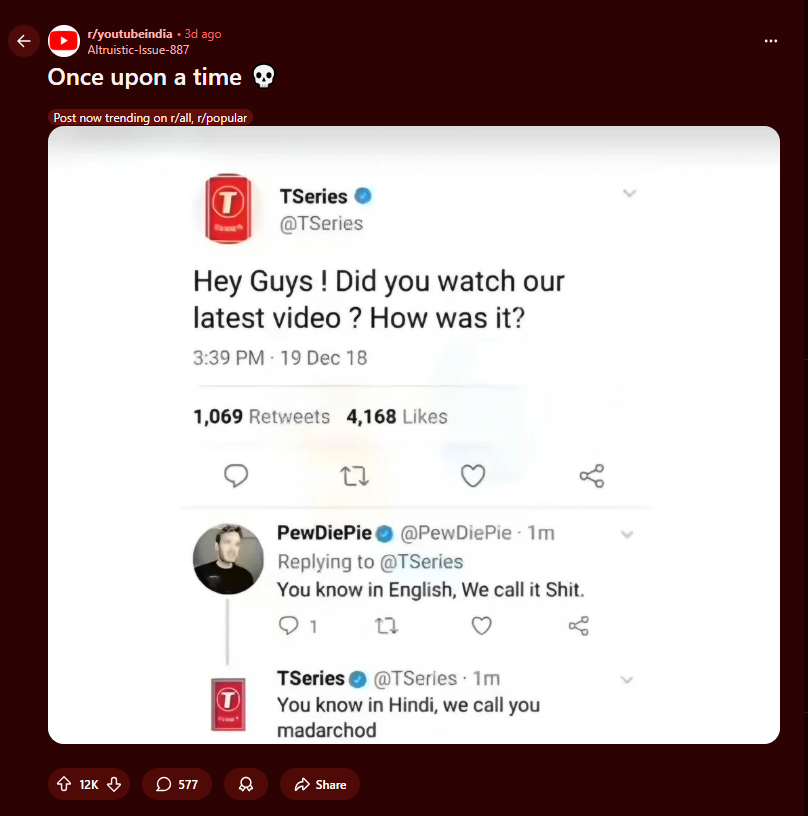Lol he single handedly popularized bob vagene meme and contributed to global hatred of pajeets. He'll always be a famous multi millionaire with qt wife while you remain a currycel nobody