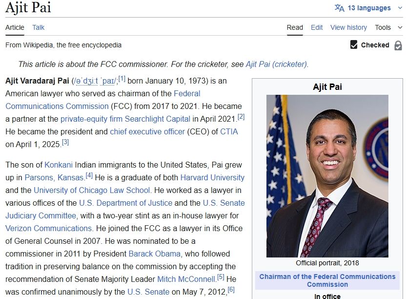 No, it's actually an amalgamation of an Indian American lawyer Pai Ajit's name.