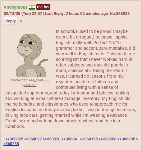 You're way too much in the blackpill pyaare, trust me 90% of people (normalfags ) Don't care about this shit especially women, they would fuck a man as long as he's hot regardless of race. Also pajeettas aren't as desired kek, they even lower than indian if you consider the interracial marriage statistics of lundians where pajeets marry more out of their race compared to pajeetas. Mind you chinkcels literally seethe in Malaysia/singapore cause pajeets keep taking their women that's it's literally one of the most popular racial pairing there.