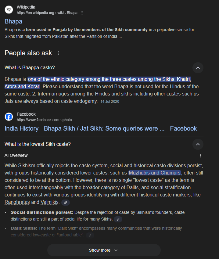 In my village both lindus and sikhs are called as bhappas