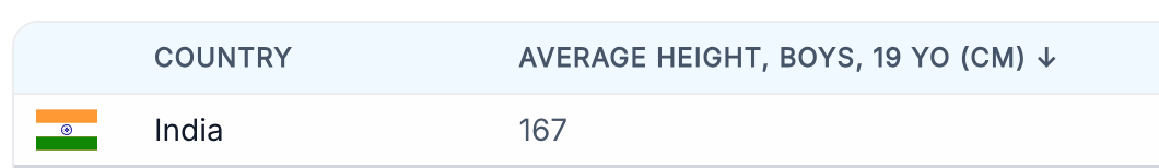 looking at the stats its not just an indian thing its a south asian issue in general the paijaans, the kanglus are equally as short