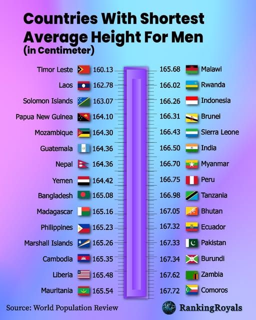 >in large populations is diet in the early stages of life some countries which were historically thought to be populated with short people have grown taller when their children started to get proper nutrition, the height difference between North and South Korea is substantial despite the two populations being genetically identical