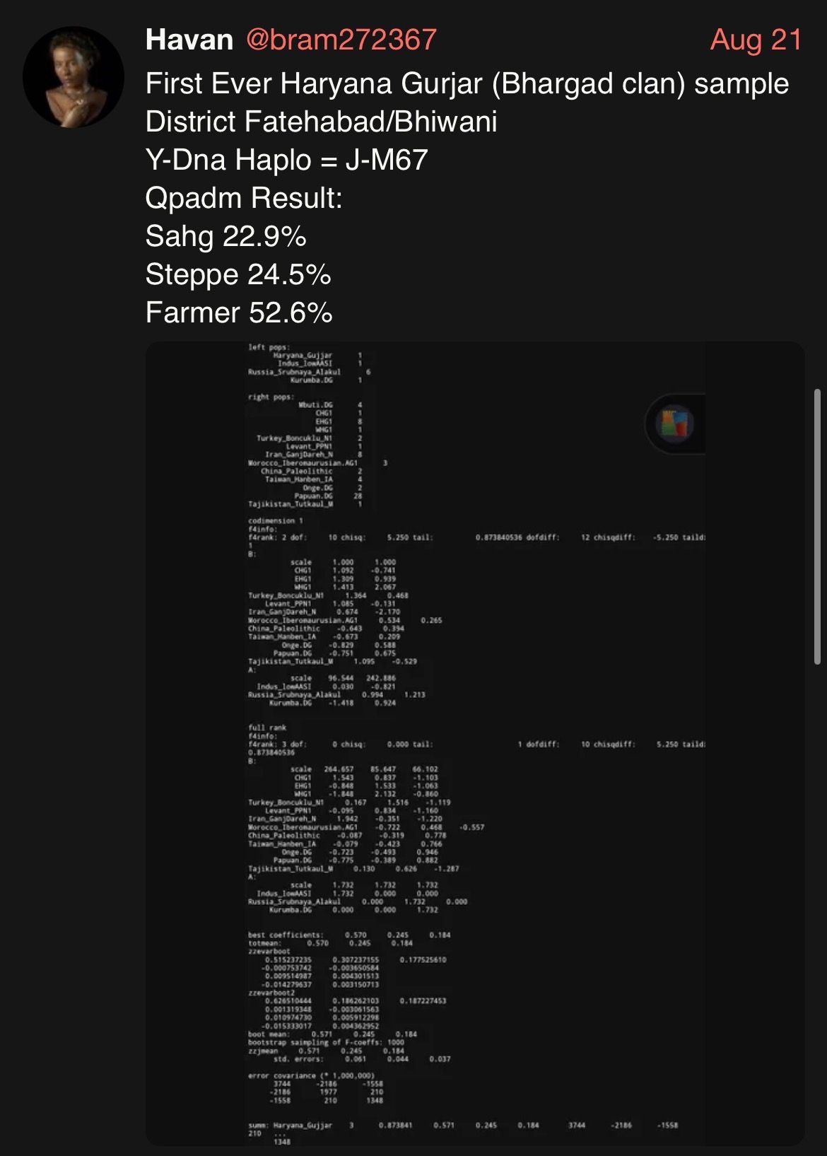 See picrel its haryana Haryanvi gujjar autosomal dna