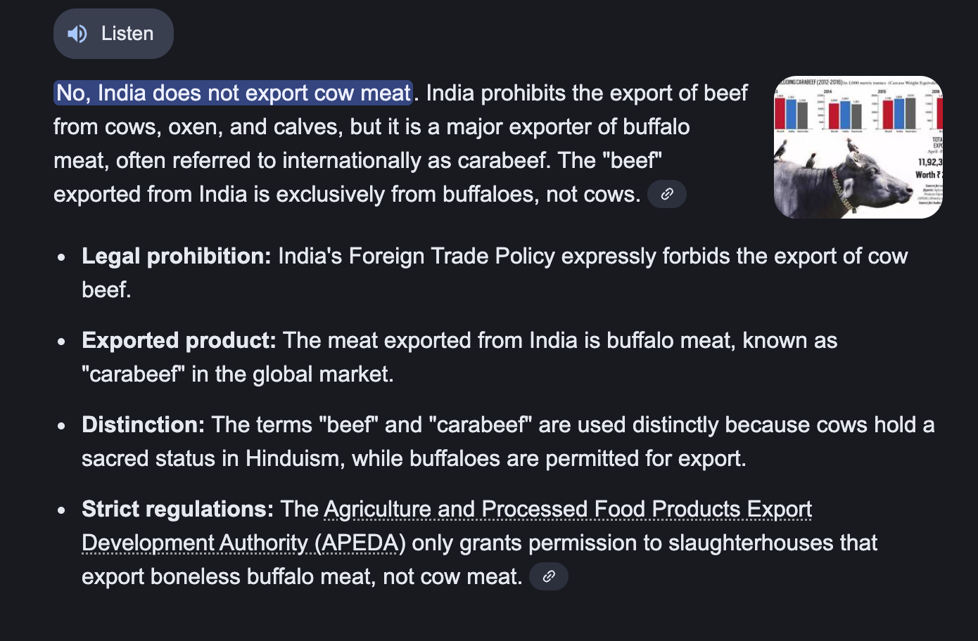 abe lodu pajeets export cara beef (buffalo meat) not gau mata (bos indicus) meat