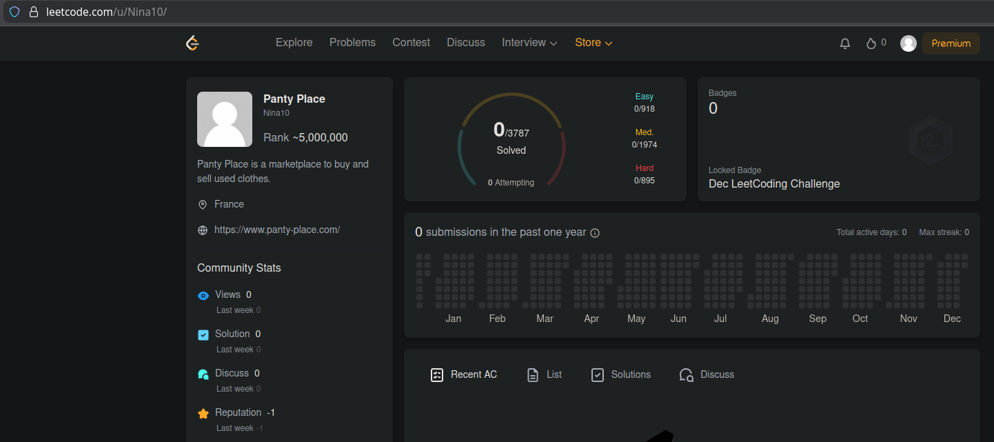 >find a user named "Panty Place"