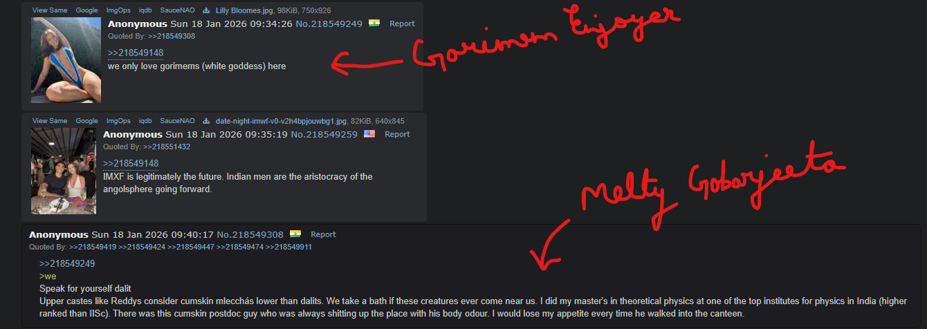 /bharat/ general from 4chan's /int/ or /int/ in general has a lot of gobarjeetas lurking and sometimes interacting. whenever someone says anything good about gorimems, they chimpout and start wordceling their muh academic achievements to make a point why gobarjeetas are better than gorimems. it's really pathetic