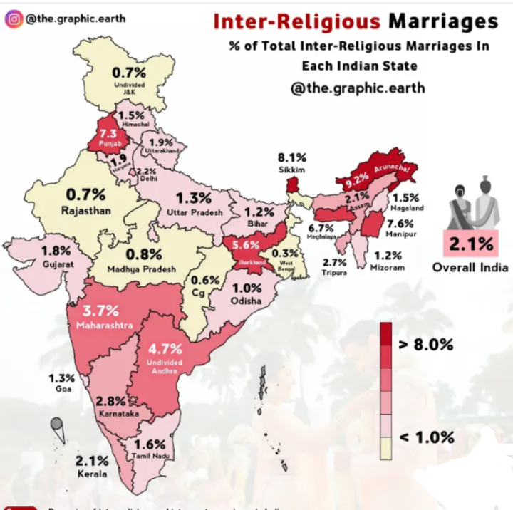 india as a whole has lower interreligious or i think inter-c@ste marriages.