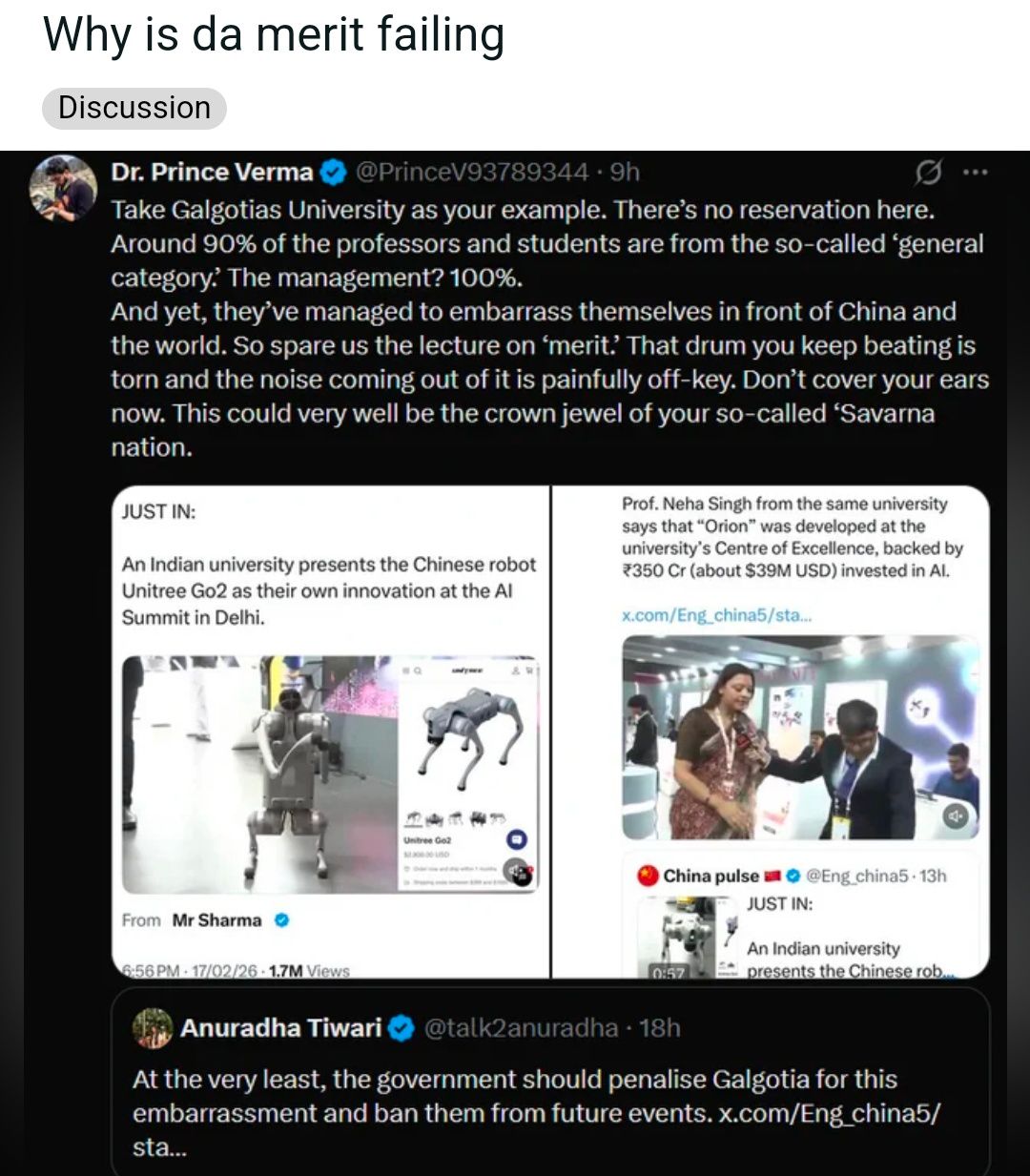 My kattar Brahmin friend posted this on his story , what's going on GC bros?