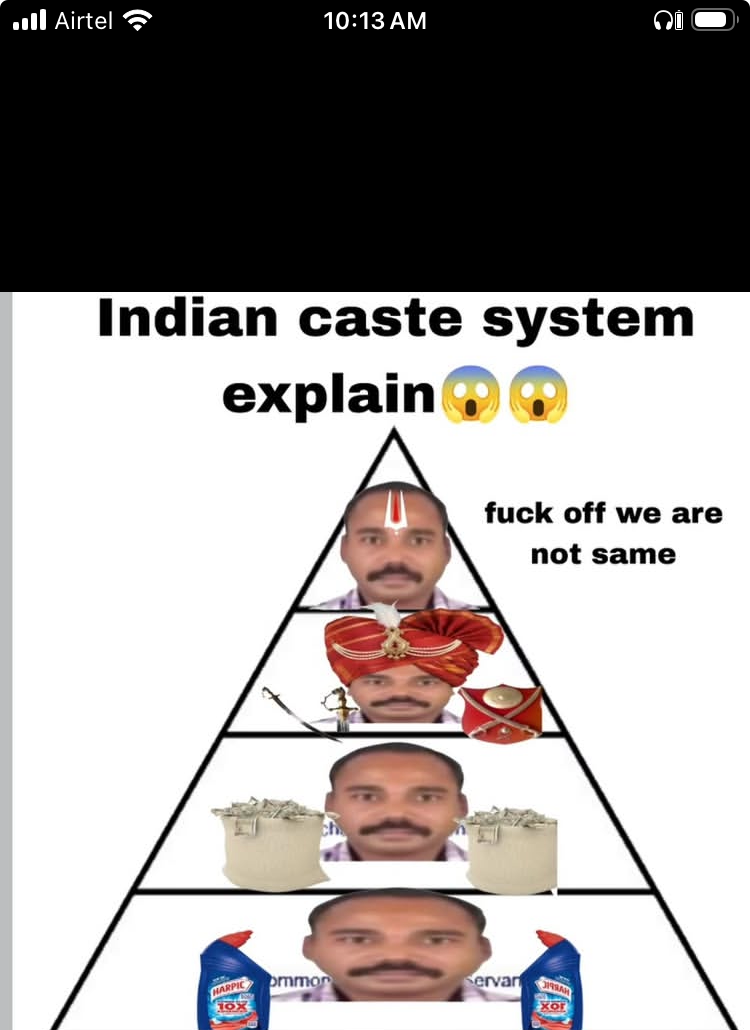 I am not saying anything wrong though. I feel like all Varnas have right to refuse association with people of their Varna. Same way I don't like to associate with V1 of certain regions for their superiority complex. I still do think they are V1 none the less.