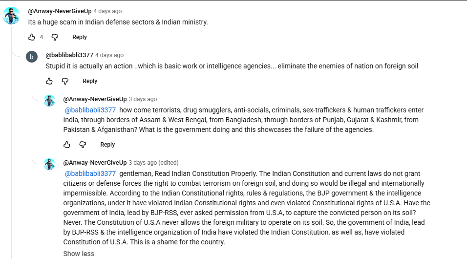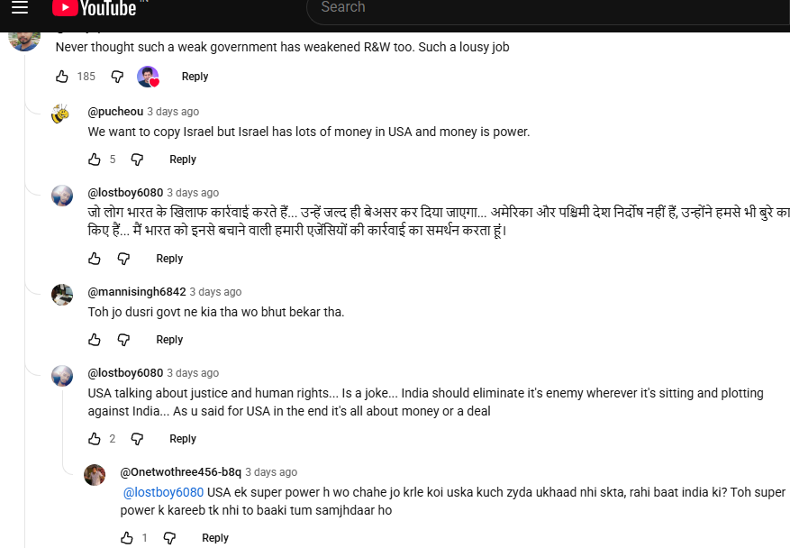>most of them are straight up cursing India for carrying out assassinations on terrorists.