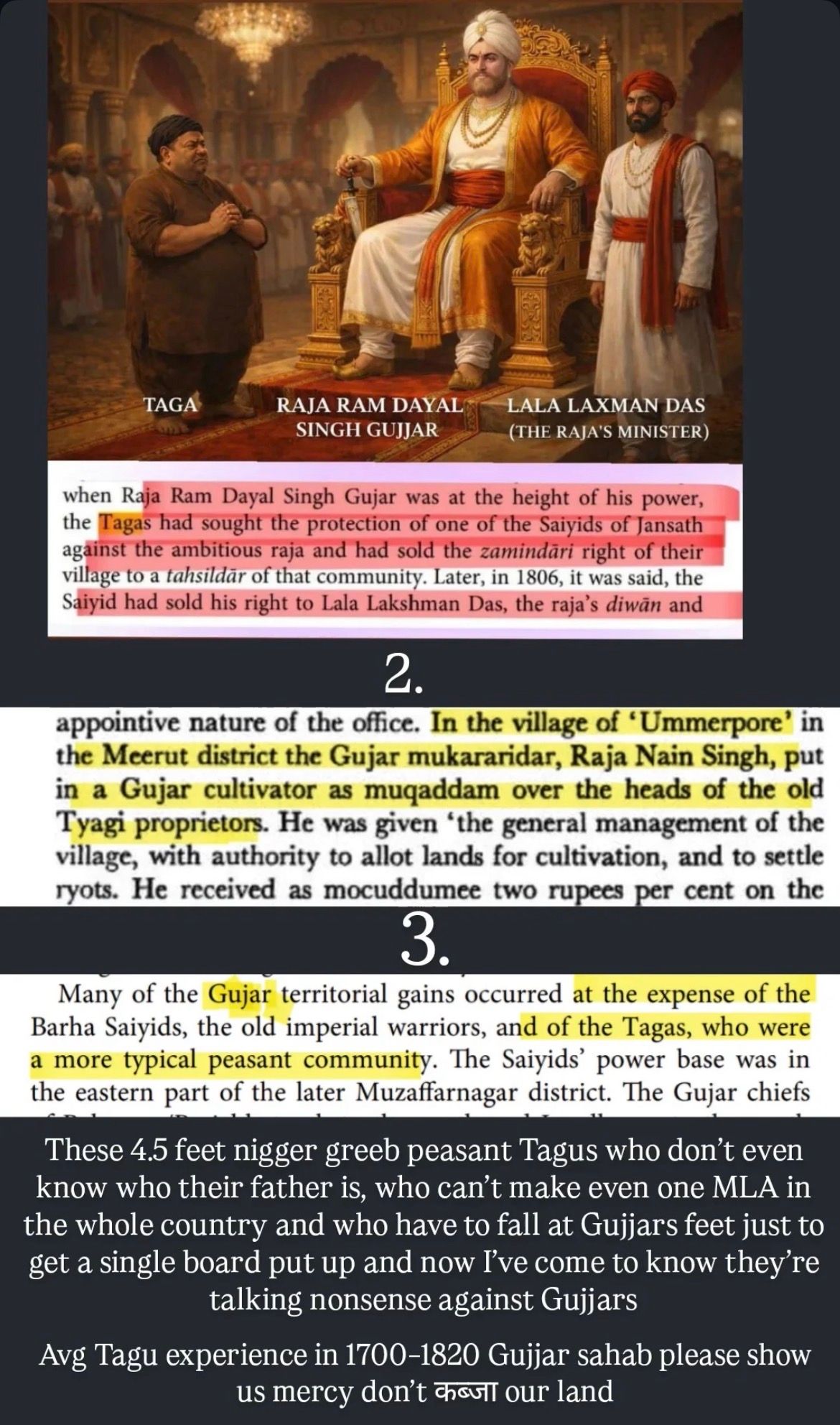 tu hoga gujjar mujhe ke lena dena. mai to na hoon. jaato ko bakta ho bak, tyagio ko bakta ho bak, bamano rajputo ko bakta ho bak. mera to ho gaya kaam poora. ab na bana ra bait.