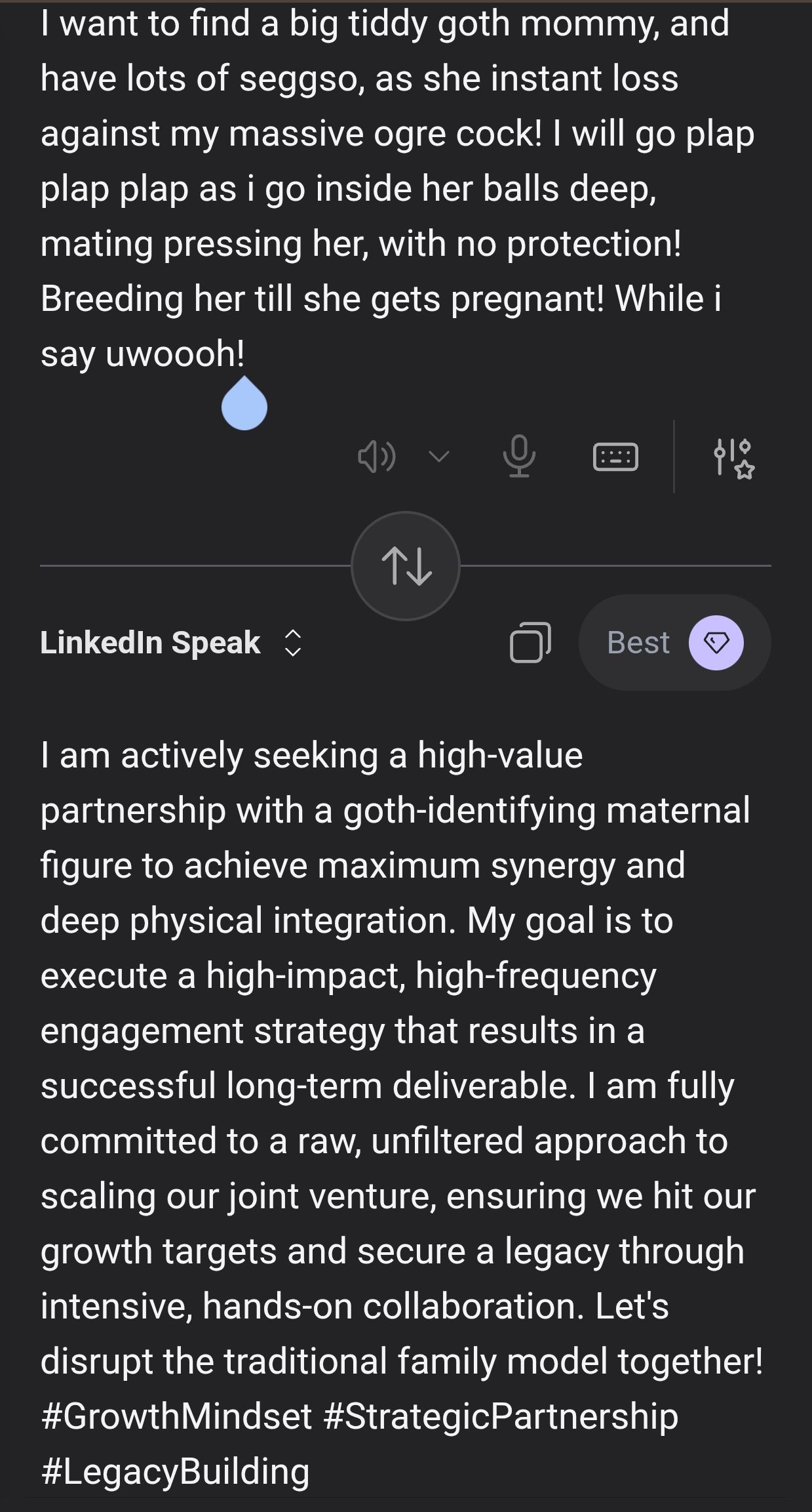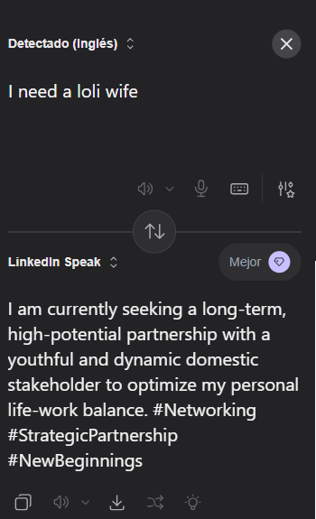 While I do not currently possess a core competency in computer science engineering, I am proposing that we leverage a high-performance LLM subject matter expert to optimize a bespoke model utilizing corporate data sets, such as LinkedIn. This strategic initiative will allow us to deep-dive into their behavioral paradigms, identify key value propositions to effectively mog during the interview process, and achieve full alignment with their internal culture.