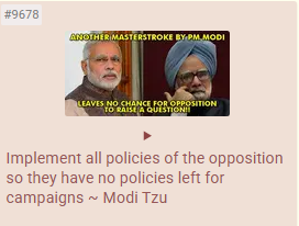 Modi meanwhile was the opposite, he is far too deliberate which means even when he has power he plays by the left liberals system. To him, power isn't a resource to reach ends but the ends in on it itself.