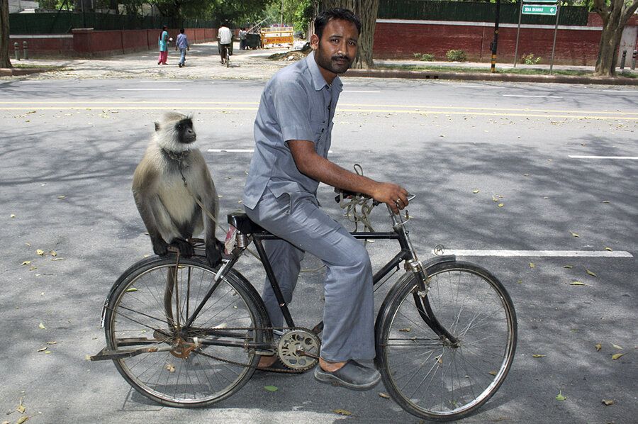 I remember from nursery till middle school, an uncle used to come to our school to shoo all the jaggus away with his langur. As a reward, he would give the langur bananas for chasing them off. He kept the langur tied to his cycle, and the uncle would make 4-5 rounds around the playground early in the morning while the langur did its job.
