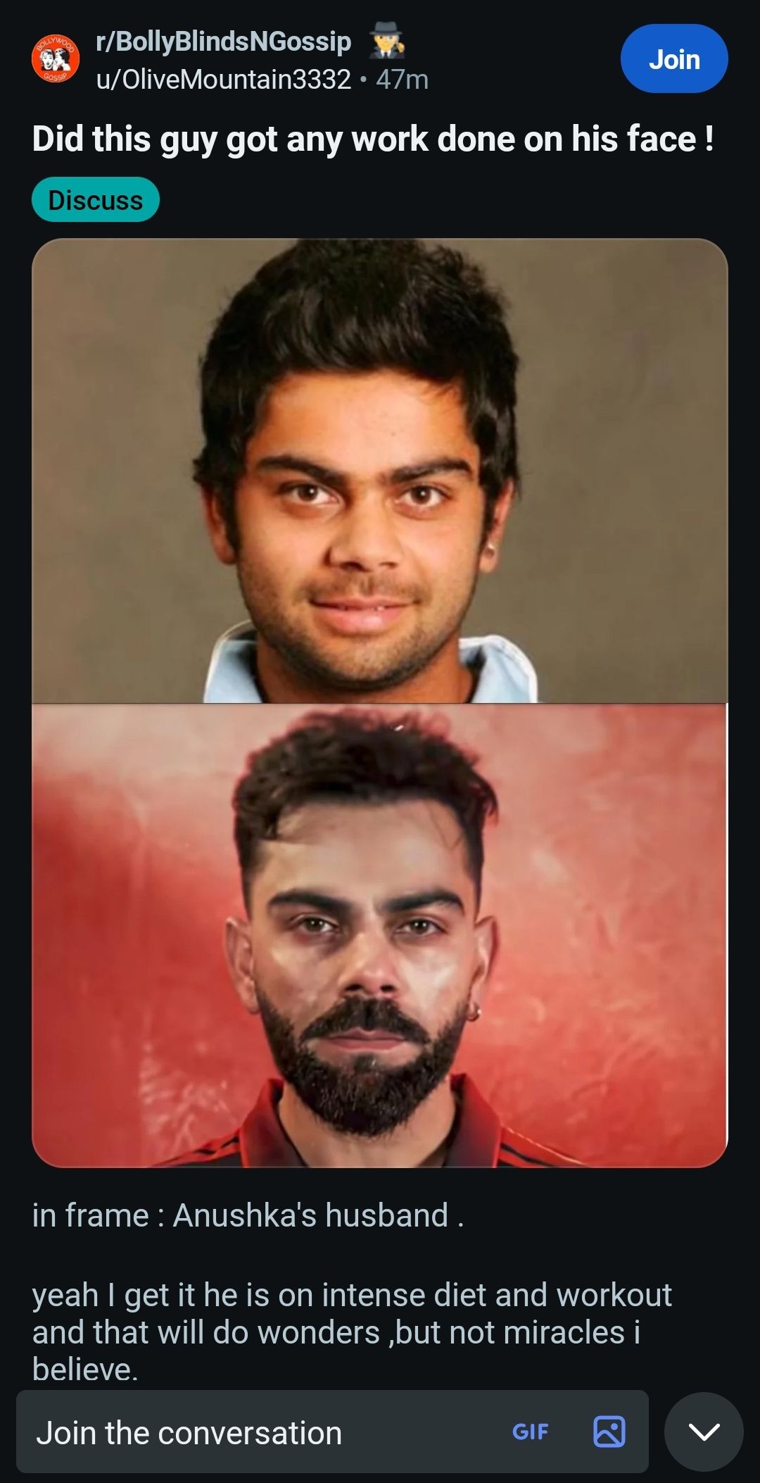 Plebbit thinks virat kohli got plastic surgery