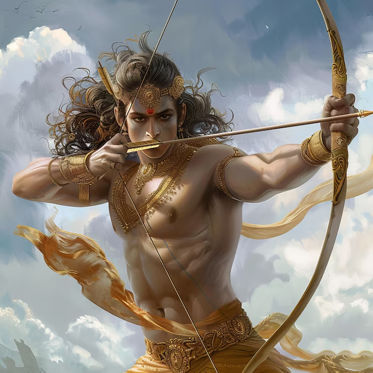 The one with broad shoulders and strong chest, his arms carry immense strength, prominent cheekbones, eyes like lotus petals, glowing face, his walk resembles lion, perfect skull, jatadhari etc etc.
