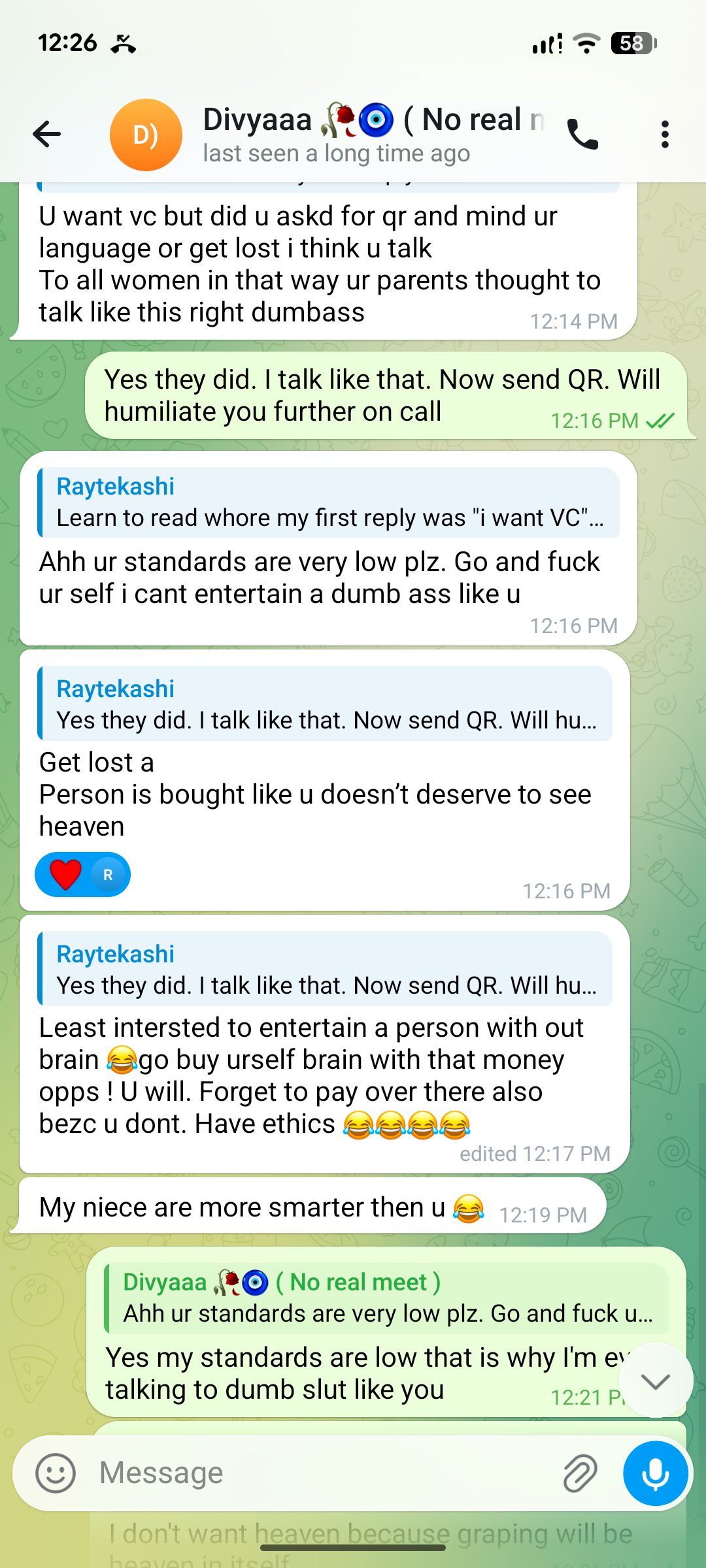 I find it hilarious she's talking about not being raised right or not going to heaven when she's a literal whore.