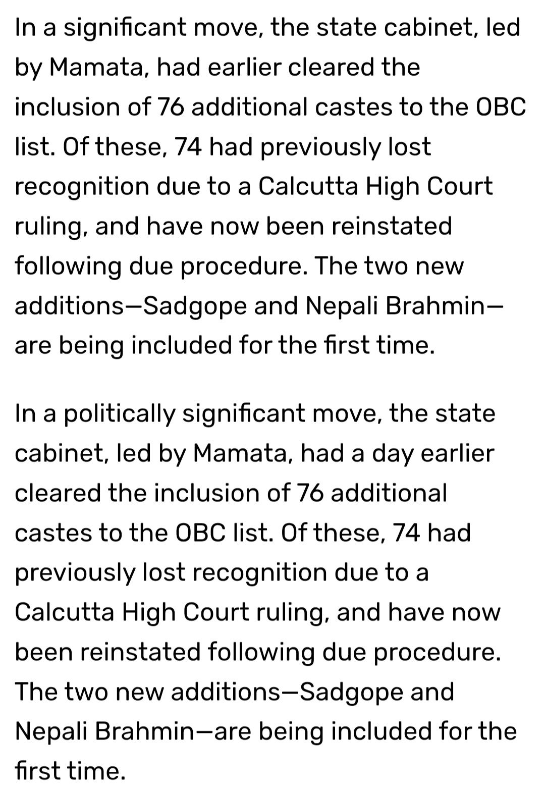 >Has nothing to do with and more with the structure of Bengal society. She has been abusing OBC status all the same.