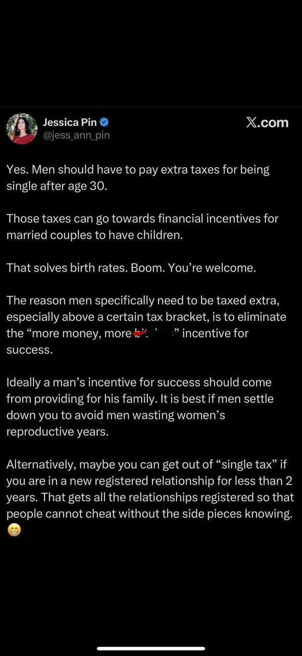 Single men above 30 should pay extra taxes which s...