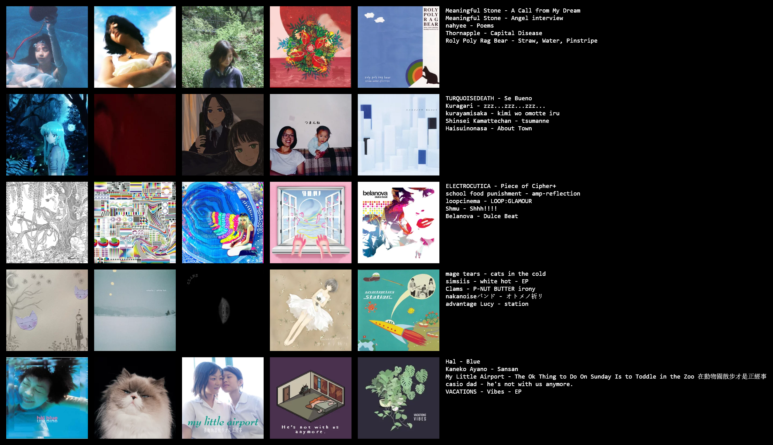 Anyways about your list, I recognise and already have listened to two albums from it; Dookie and Color and Shape. Bretty good ones. Will probably get into more Soutaisei I really like their sound. World Convergence 2116 is a great yet underrated album, first discovered them way back in 2017 or something its been my top 5 album since. I do have it in HiRes so if you want to have em you can ask me.