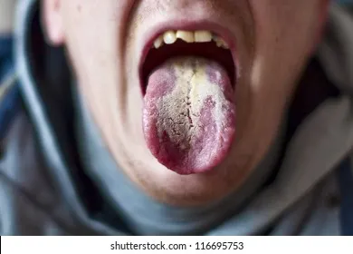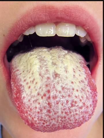 white coat: small amount of biofilm blocking your cells in the digestive system. pooping is already no longer fun.