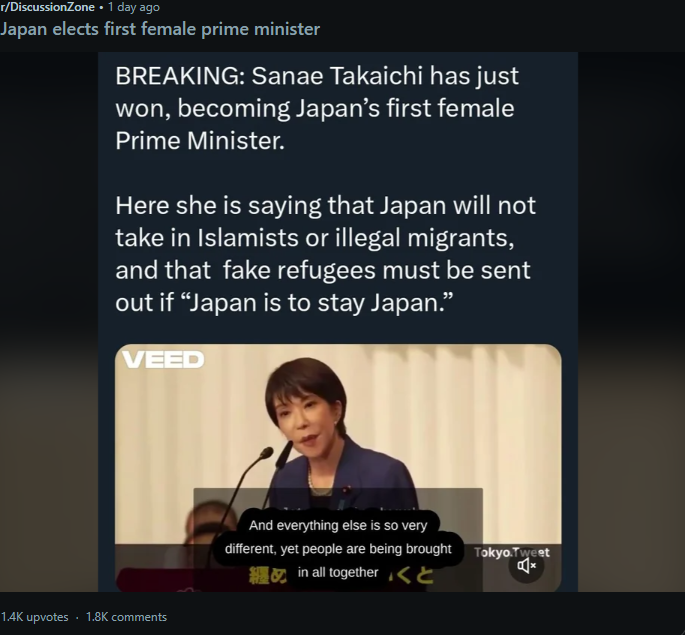 She's nothing like the gook feminist cult. She's like a Japanese Meloni or Tatctcher more than anything.
