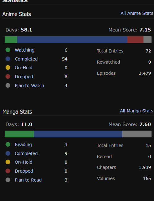 mal sucks ass. i ditched all of these muh tracker sites and just moved everything to google sheets/notion. only place i bother checking now is letterboxd for movies, livechart for animu, and random sites/forums for recs and discussion