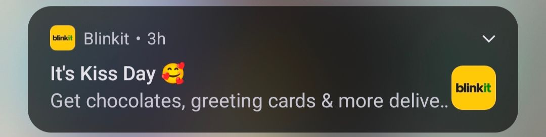 I have turned on the incel mode on blinkit yet they are still sending me kiss day notifications.