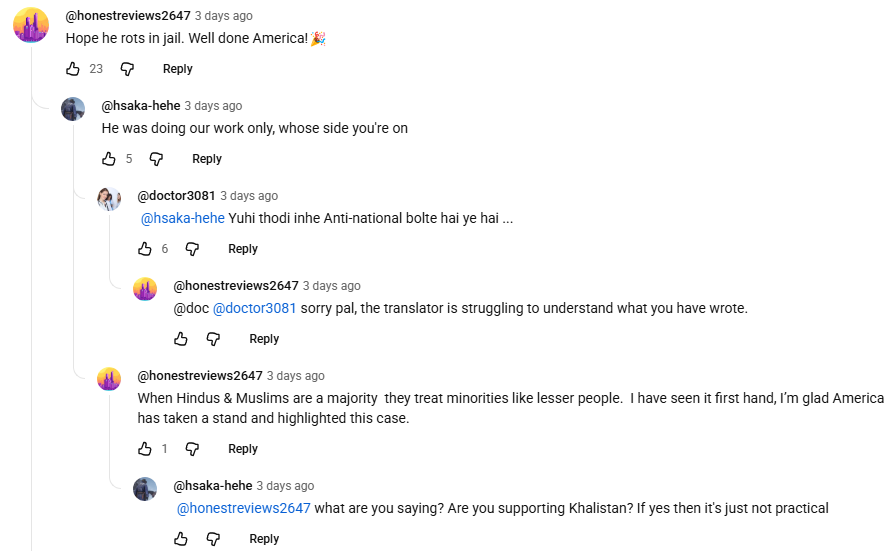 >most of them are straight up cursing India for carrying out assassinations on terrorists.