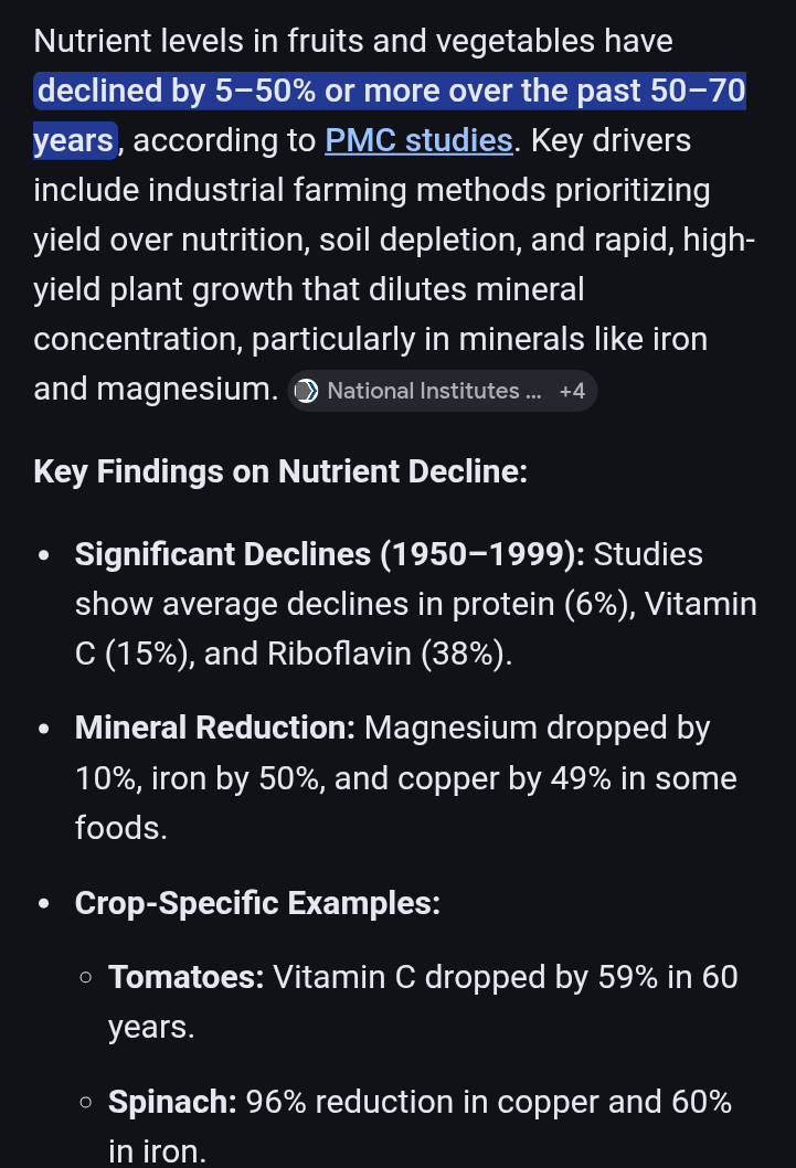 it is simple, agriculture selects for yield (quantitity), all these vegetables and fruits were once wild, it is a form of domestication, we will soon have widespread malnutrition