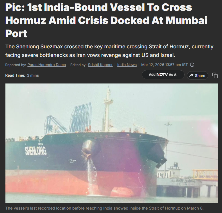Bad cope. You were asking whether it crossed the straight, it did since it start from the dubai port and heading to mundra. Next cope.