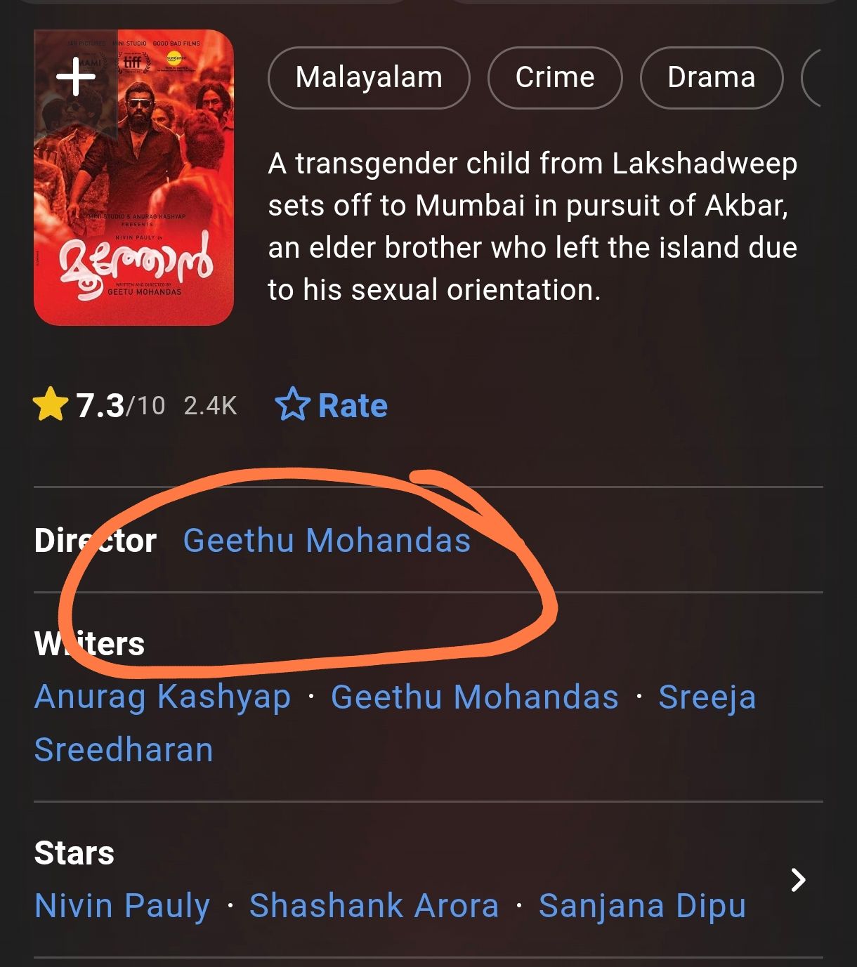 She's a Mallu feminist director randi who makes librandu movies See the cast of Toxic: it's mostly actresse randis