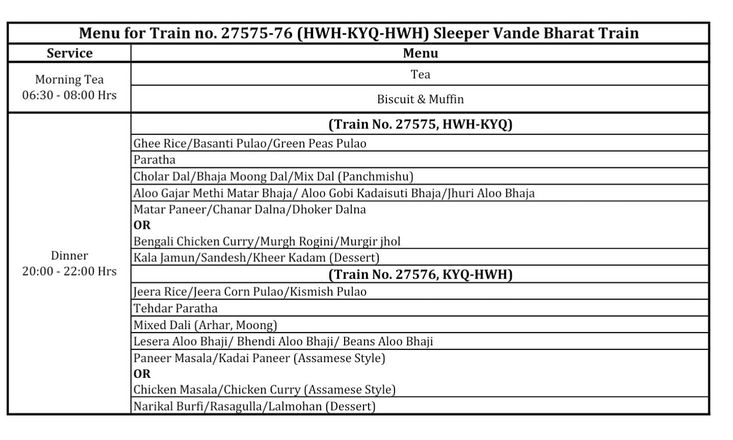 Vande bharat sleeper between Assam to West Bengal will now have non-veg meal too.