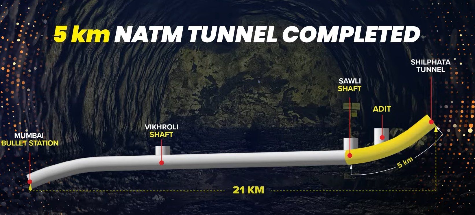 >The tunnel will run at depths ranging from 25 to 65 metres below the surface, dipping to as much as 114 metres beneath Parsik Hill near Shilphata. NHSRCL plans to deploy two TBMs initially, with an option of using a third if required to meet deadlines. The tunnelling will create a single-tube passage carrying both up and down tracks of the bullet train.