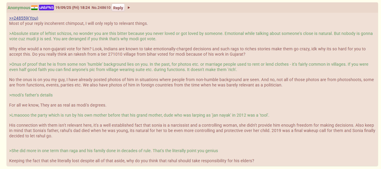 lol this is just cope. Modi has a good hairline, exemplary fashion sense and is generally very well kempt. He is a jolly old uncle archetype seen very positively and high-trustworthiness in all cultures. Raga could look better but he has to get rid of his pubey fucking beard. He looked and dressed much better 10 years back.