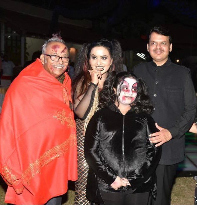 amruta fadanvis's father at a halloween party dressed like the palghar sanyasi who was lynched by christbahangis
