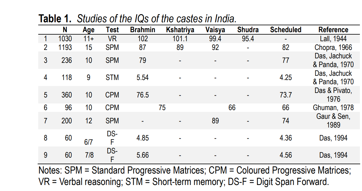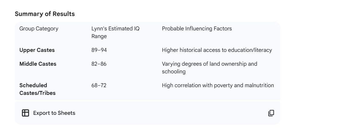 nah, I just asked it to state the avg iq of india by various (indian)/varna groups according to lynn's findings