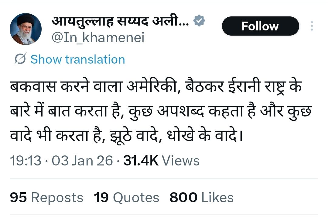 Iran' supreme leader's indian handle tweets in Hindi. Even foreigners know Hindi is India's national language.