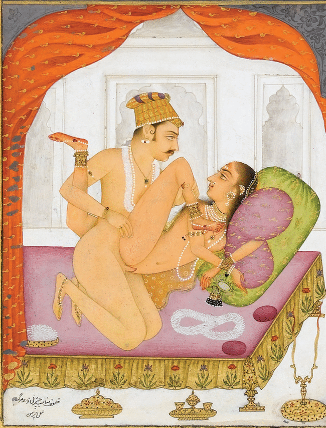 That's a painting Mughals made inspired by Kamasutra sex positions. This is one from a Rajput king